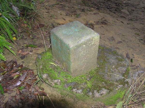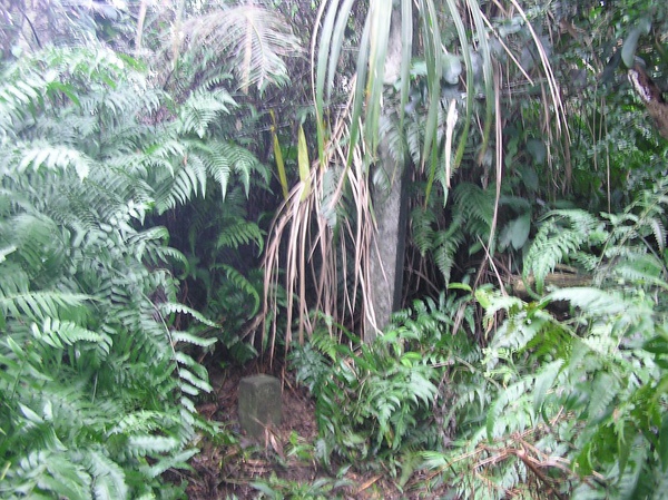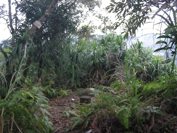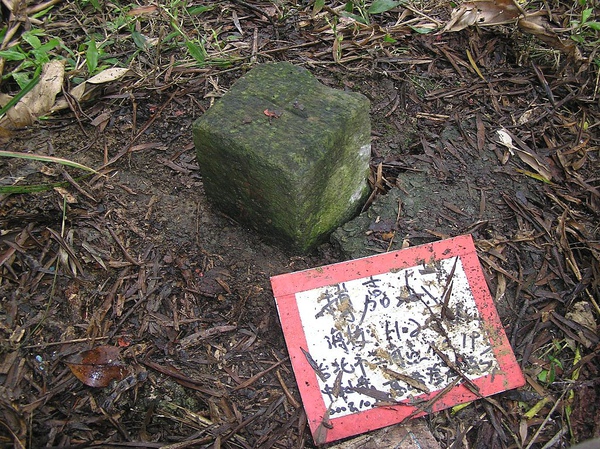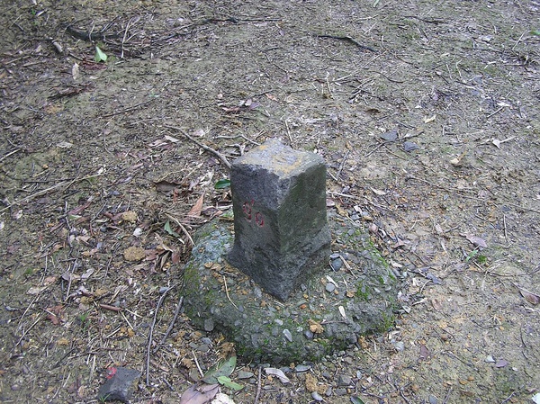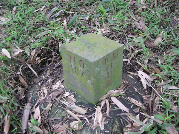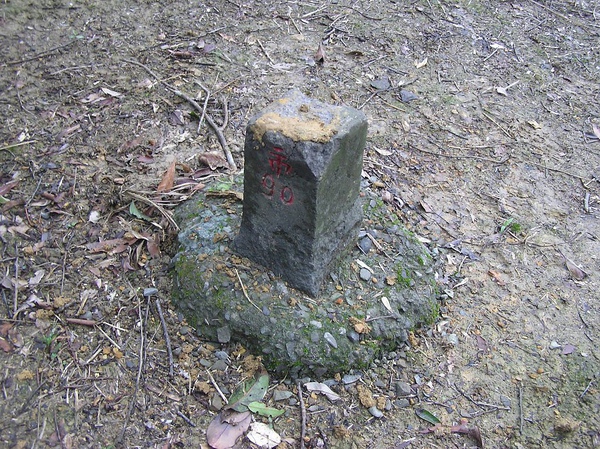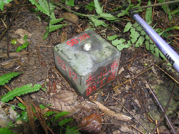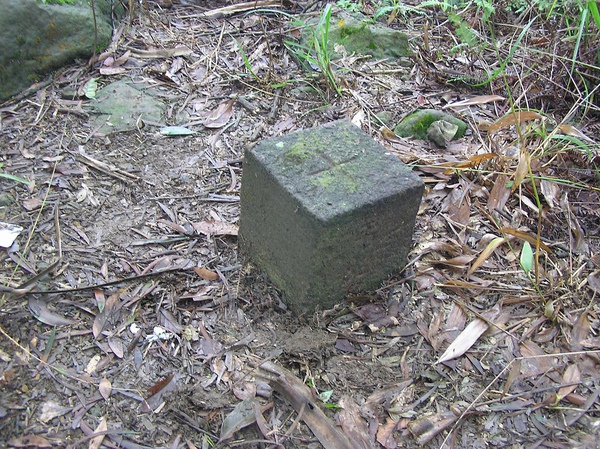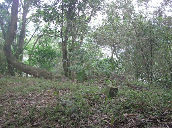 據說還有另一顆基石,但在山上繞來繞去、砍掉許多草叢後仍沒發現 (只有一根台電的水泥樁)。後雨勢漸漸變大,趕緊下山回家。之後查資料,有另一顆國道工程局的基石,但是在通往土地公嶺的路上,山頭上的確只有這顆而已。