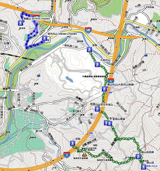 福德坑附近的幾個山頭都走完了,但在靠近木柵處還有兩個小山頭,都在萬芳交流道附近;其中灰窟坑山因為在交流道匝道區域內無法進入(之前稍探過,似乎有辦法越過鐵絲網再開路上山,但今天天氣不適合),就先從另一個很近的坡內坑山開始吧。