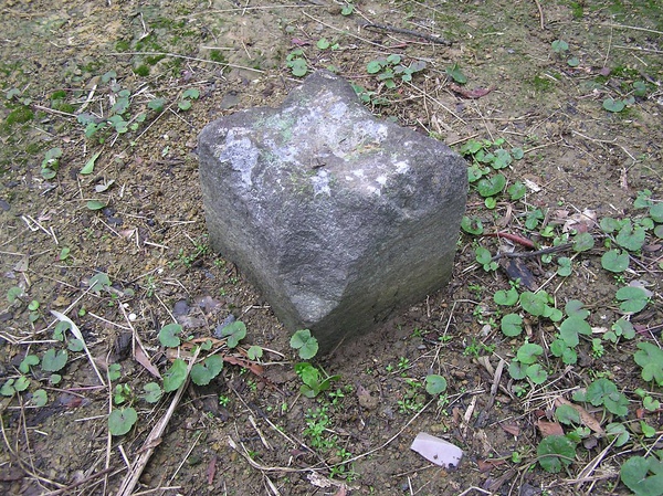 基石被無聊份子破壞,兩塊碎片掉在旁邊