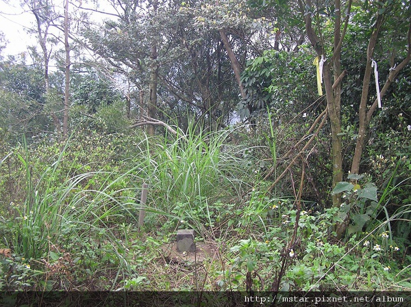 最高點似乎是在西邊山頭「樂樂亭」位置,而基石「土地調查局圖根點 緒(03)」是在稍低處,但找了一陣子仍沒發現,可能是早就不見了、也可能只是被茂密的芒草蓋住?