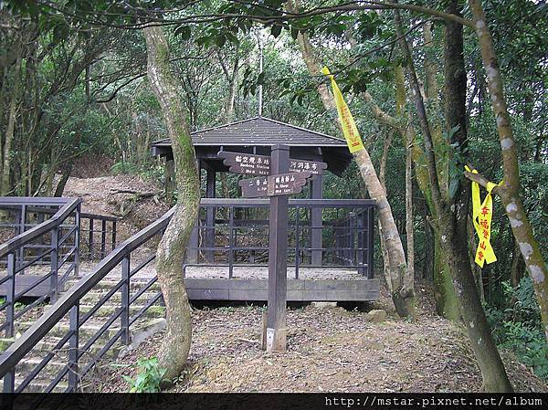 退回岔路口,繼續走稜線,不久即到達涼亭。