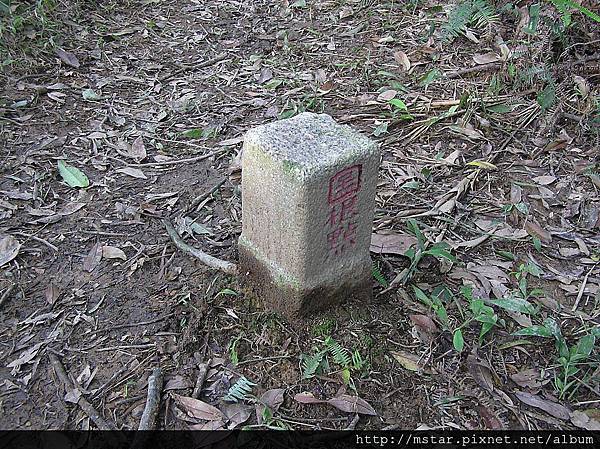 鵝角格山只是順路經過而已,主要目的是上次沒注意到的小山頭。繼續沿著稜線走,過了個山頭往下後不遠有條往右通到一座墳墓的岔路 (如果是從對向過來就很容易錯過,因為必須左迴轉),基石在墓後的土丘下。