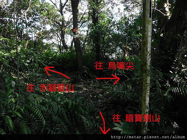 南向往鳥嘴尖走,這邊就安全很多,且踏在鬆軟的土上感覺非常舒服。不到十分鐘就抵標示「讚!」處了,原來就在鳥嘴尖的山頭下而已。