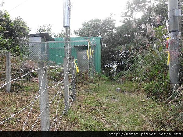 山頂寬大,可能要穿過樹叢到坡邊才能看到翡翠水庫景色吧? 山上有氣象局、翡翠水庫管理局等許多單位的設施儀器,拜他們常來維護所賜,這條路才會如此好走。繼續直行可往西南陡下到新烏路上的「民壯亭」,當然不走。