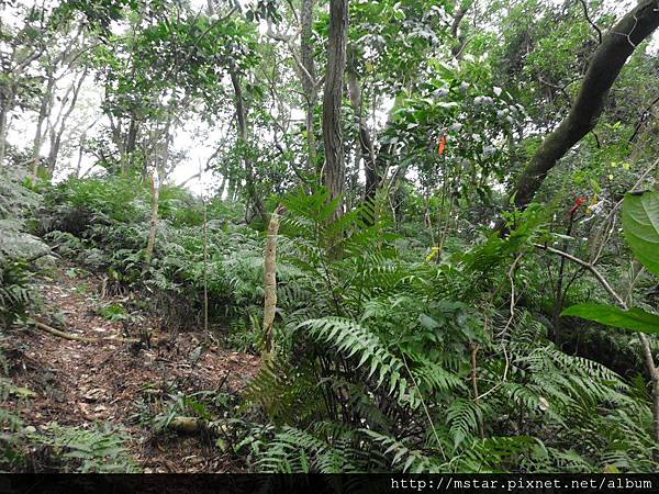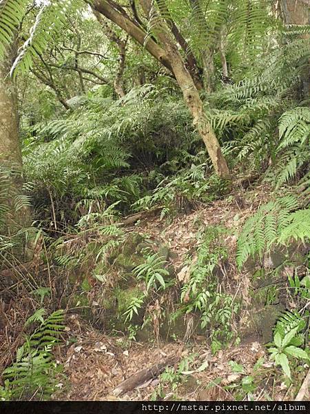 從機房斜對面進入山徑,兩旁蕨類茂密,但還是能看出路徑來。