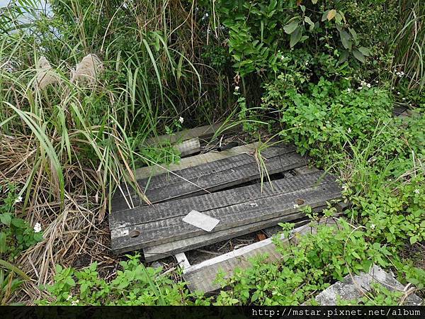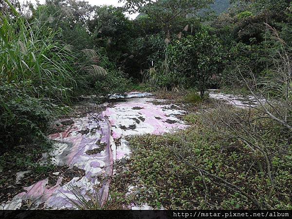 這條產業道路應該廢棄有一段時間了,路上長滿植物、原本水泥路面也都破碎風化、蓋滿泥土。