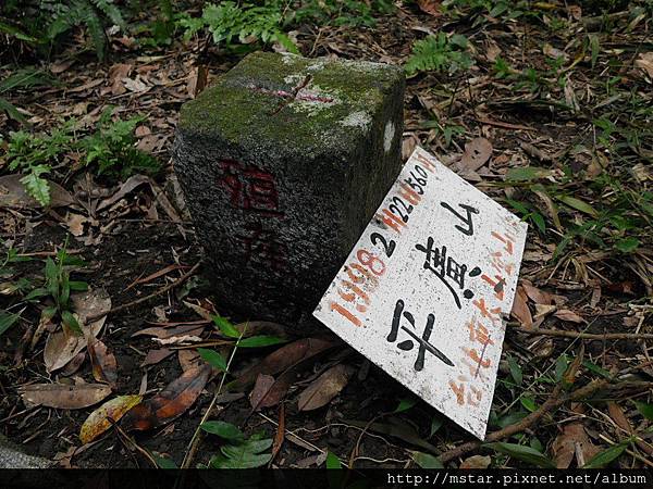緩上到高處,再稍陡下抵鞍部,然後陡上一段後又轉緩,跡石就在還蠻平緩的山頂上。