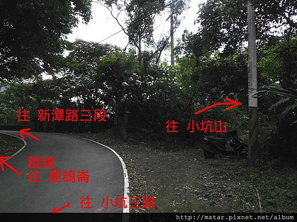 走小坑三路回頭,在快到新潭路的轉彎前停車,右手邊是小坑山的入口。