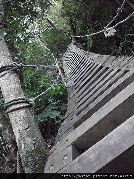 其實這種木梯反而比像猴山岳那種要抓繩上的攀岩石壁安全多了,只要把身體緊靠木梯、手抓好木條或旁邊的繩子,基本上不容易發生危險。