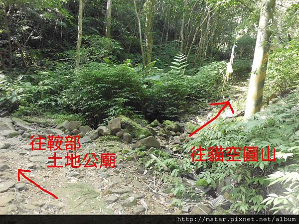 走完柏油路、水泥路面,之後是凹凸不平的石頭路面+泥土小徑。繼續走可通抵稍後會經過的鞍部小土地公廟 (福德宮);這條路若是整理整理並鋪上水泥或柏油,就會是從木柵到北宜公路的捷徑。
