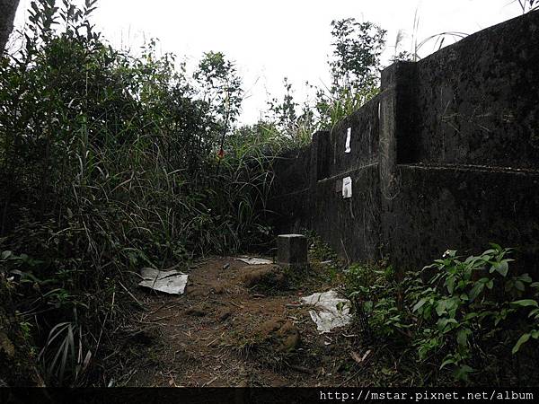 抵達廢棄建物圍牆,左轉從圍牆與西側觀景台之間進入摸三角點。