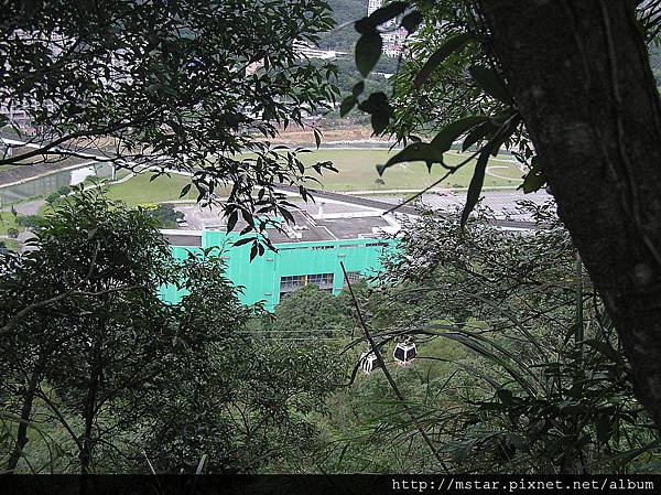 但往前遇到貓空纜車塔柱維護用小徑時,不小心錯往北走,結果下到動物園裏的車道 (應該要往南走,到接近纜車站前再往西穿縫隙出萬壽路);只好繼續踢柏油路往出口走。這邊似乎是動物園的公務出口,而這個纜車站應該也很少上下客,所以站務員看到我接近還覺得很驚訝,以為我是走錯路的動物園遊客;我也將錯就錯,說要出去,而他也放行了。