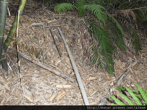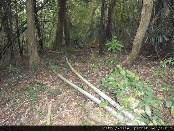 繼續跟著往南的水管走 (不要錯跟往東的水管,會走到其他山頭),出竹林後路徑也變得好走,很快到達基石所在山頭。