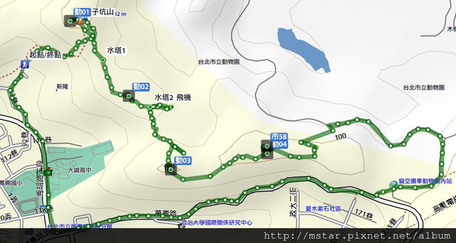 原本是打算原路退回出發點,但覺得左手受傷可能不太好抓竹子陡下剛才那座(疑似)墳墓處,所以決定從貓空纜車動物園內站出萬壽路,走大路回去。