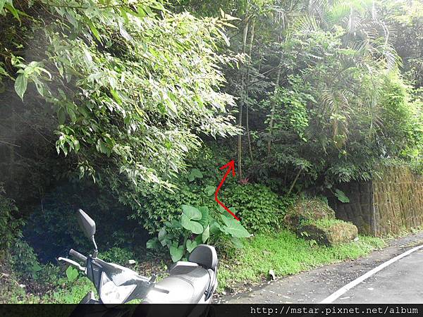 過了 308 巷之後注意左邊,在「大豐幹 76」電線桿附近停車,從小山溝旁的路徑往上。