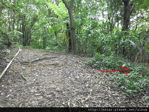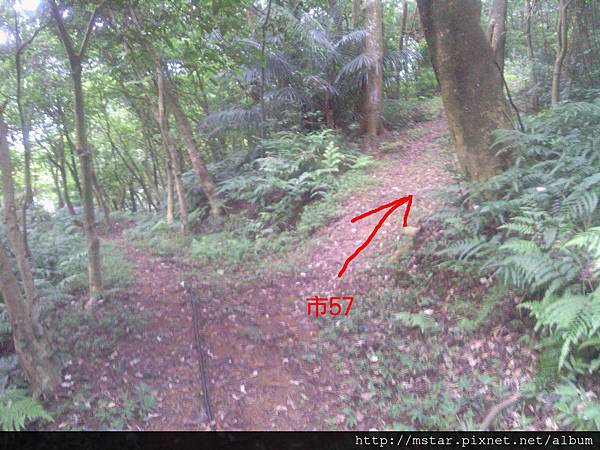 前段是水泥階梯與水泥步道,直行不轉彎走到底、左轉進入寬敞土路 (台電保線路?);跨過一次橫向水管、再遇到橫向水管前就該右轉進入不很密的林間。