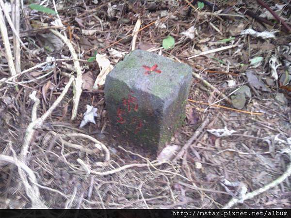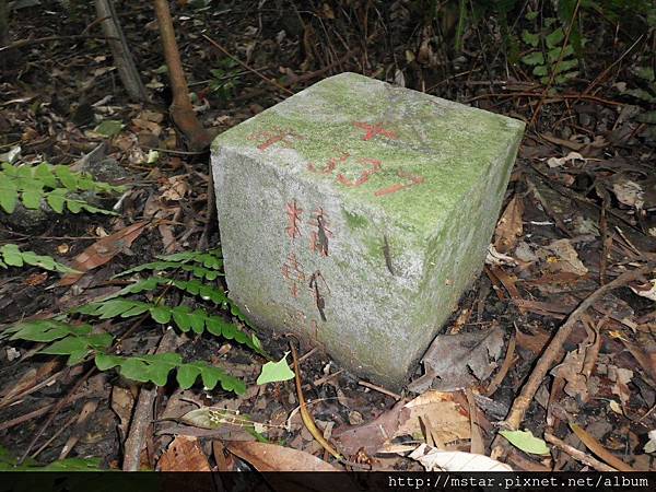 花了比預期多的時間,終於到達目的地;一時之間竟沒發現基石,找了十多分鐘才在一株月桃旁發現,原來是被蕨類遮蔽住了。