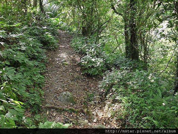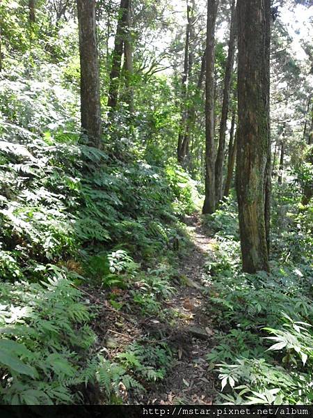 之後路徑變得比較沒有之前那麼舒服、且比較迂迴、兩旁雜草蕨類有時掩蓋路面。