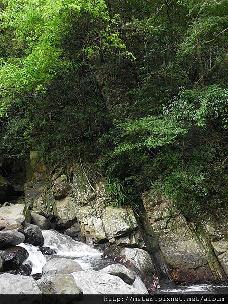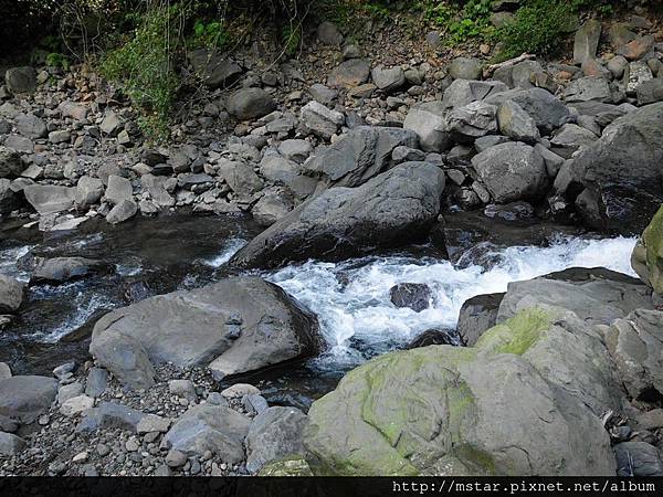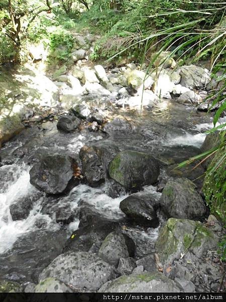 有溪水較淺處可過,但仍懶得脫鞋或換鞋,還是從稍下游處跳石回左岸。